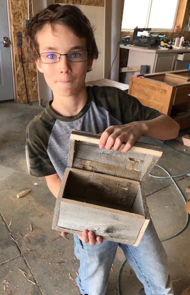 I love the treasure chest Wes made. Especially the thought process that went into it. Way to go and exercise that brain! And way to go Jenn for exercising that patience!!