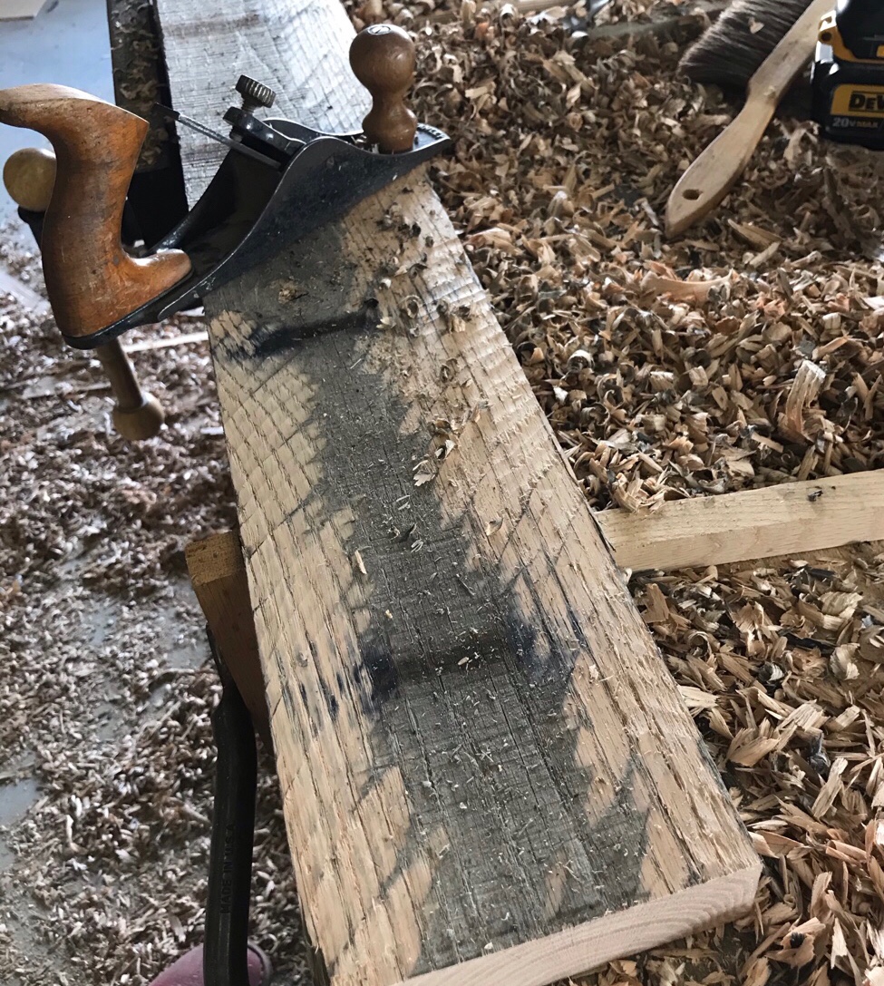 You can see in the picture above that my first passes only touched the middle, removing most of the crown. Follow up passes came closer to leveling the whole width of the board.