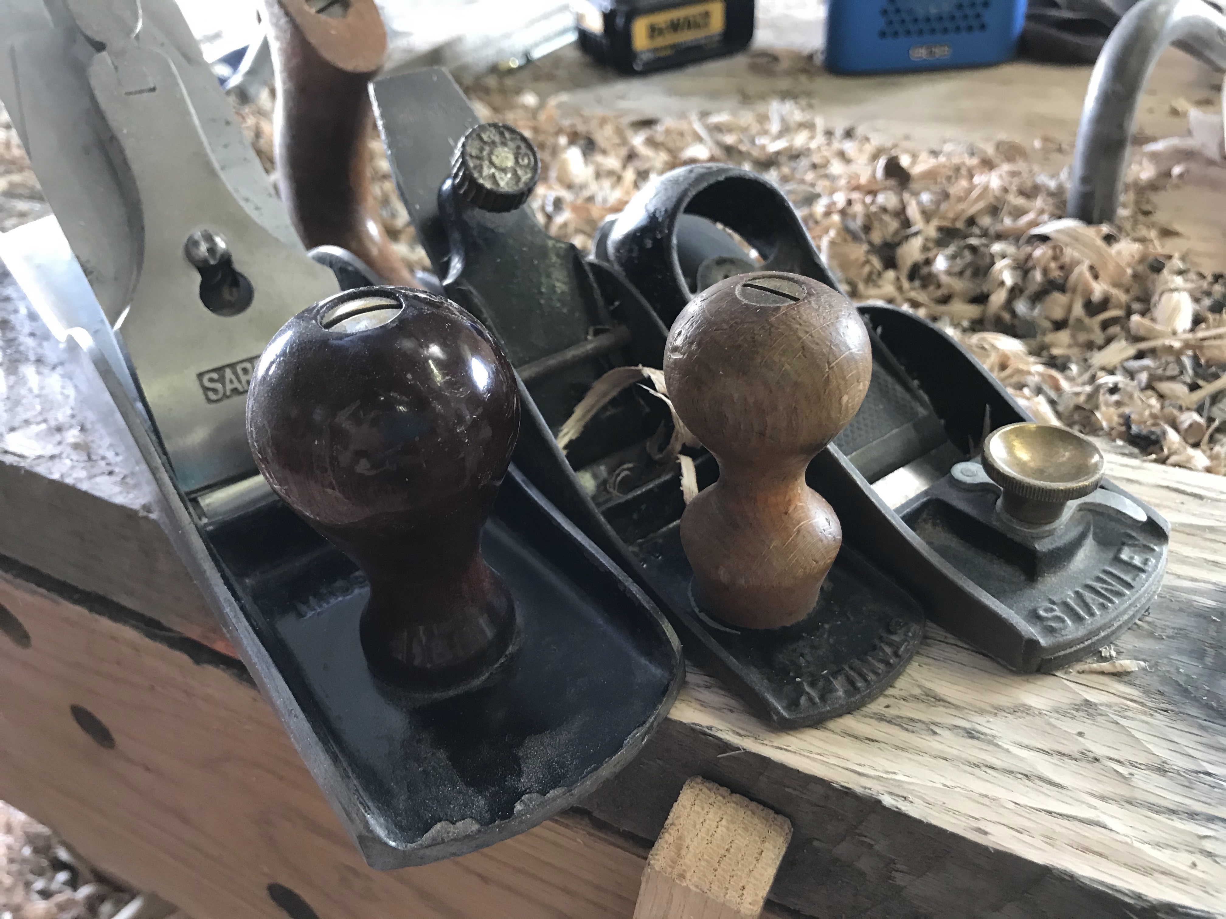 At first glance you might think that scrub planes are a bit undersized, but if you measure the work you’ve done by the size of the pile of shavings on the floor, then don’t be fooled by this plane’s size. As long as you keep your blade honed, then it will slice through the wood like butter. I sharpen mine on the top of my WorkSharp. With a little practice, grinding a curve doesn’t seem so scary and you figure out a rhythm for it.