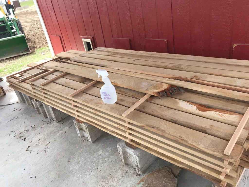 There was also a bit of mold growing on the boards where they had left the bark on the wood. I sprayed everything I saw with a bleach solution, but will probably still have some staining. I can’t wait to update you on this project! We have some dead spruce trees in our yard that I’d like to have milled at the same time. Some of them are destined to become an end grain floor for the shop ;0)