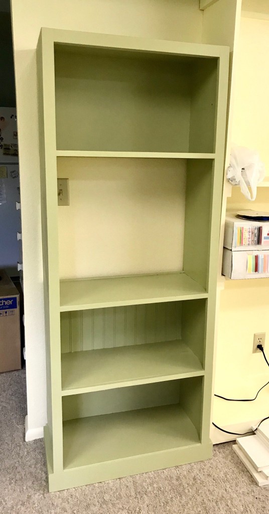 Next order of business was to get the two shelves painted that were originally one shelf. After using about every saw my mom had….I started by marking everything and cutting it with a skill saw…and ended with a jig saw and hand saw to get the tighter corners…I ended up with two separate shelves to trim out.