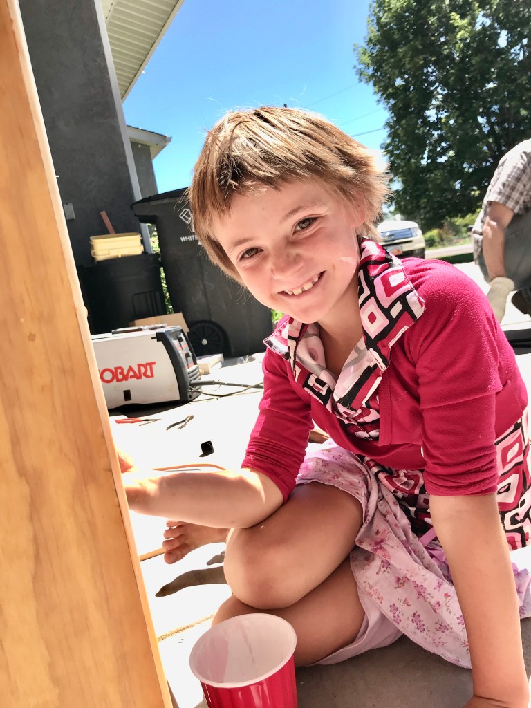 They had been patiently waiting out in the garage for a fresh coat of paint ;0). Lucky for me, I had help! Mary really wanted to paint, so she got to help with the primer coat.