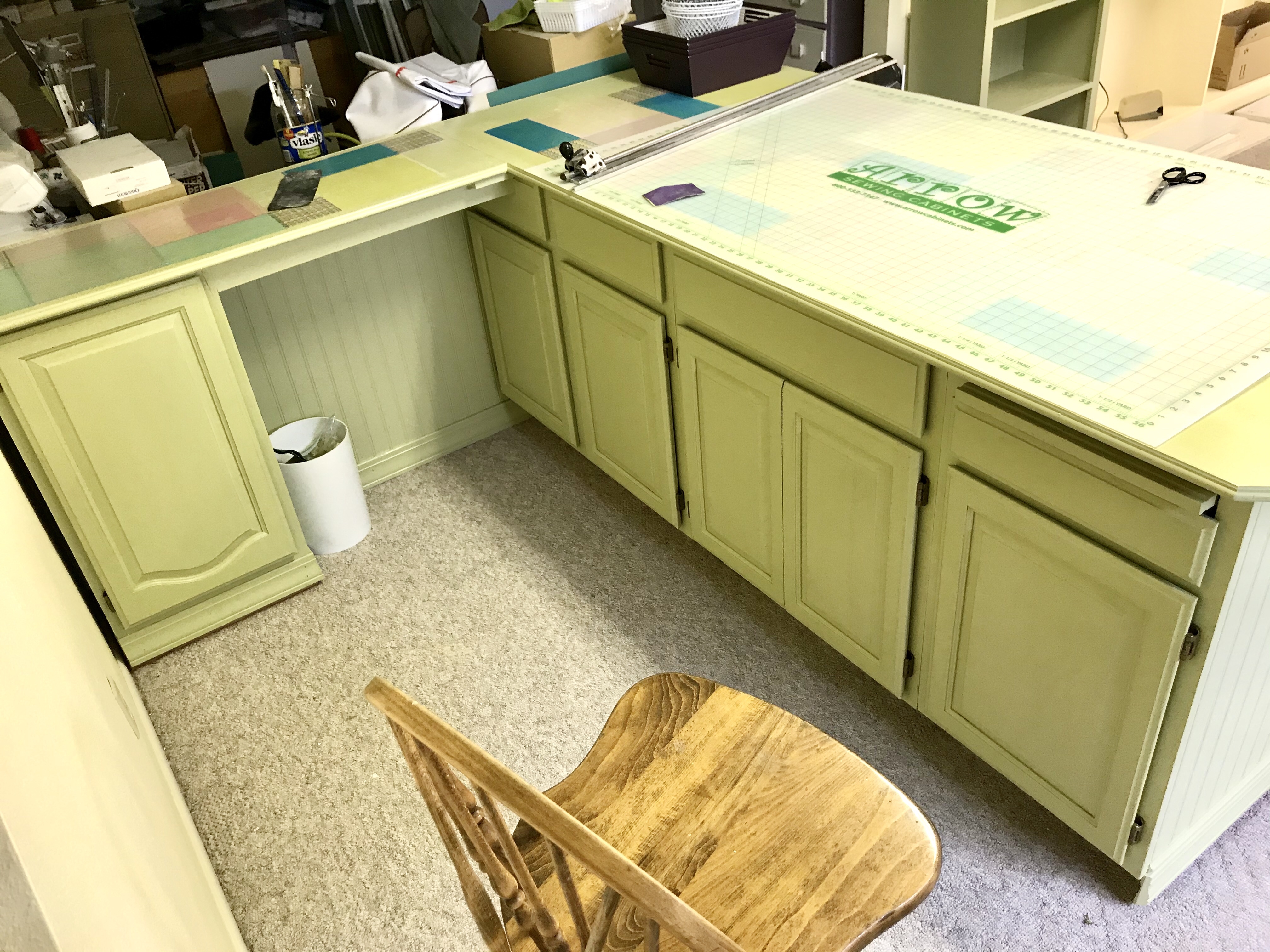 The cutting counter now has the cabinet doors on and looks really nice as you come down the stairs.