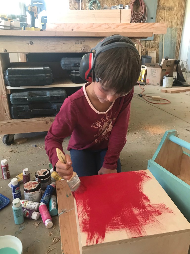 I always try to remember that kids this age aren’t worried about perfection, they just want to build. She spent the rest of the afternoon painting. while I worked on my own projects.
