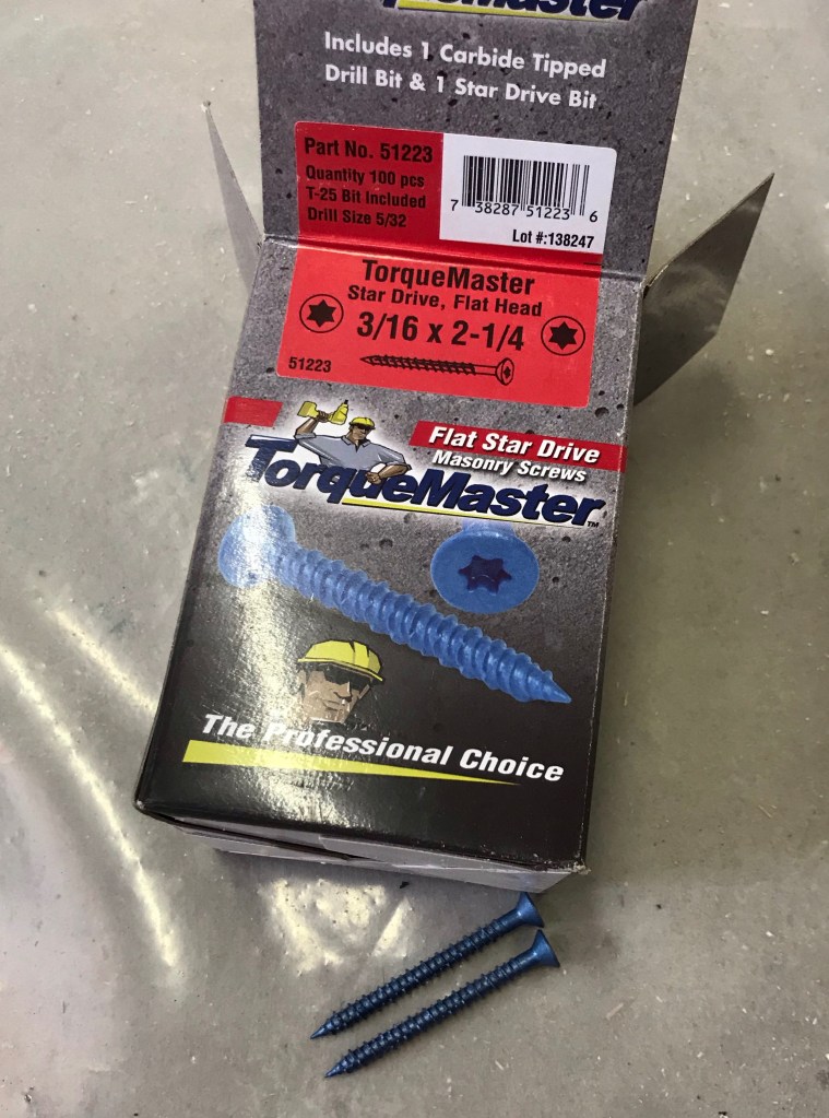 I was a bit frustrated that what I had wasn’t working out so I took a couple of screws and my drill bit back to the hardware store. A very nice sales clerk named Neal explained that I had hit rebar. Very first hole. I probably didn’t notice since I was still getting used to the drill. I bought two more drill bits and headed back home to try again.