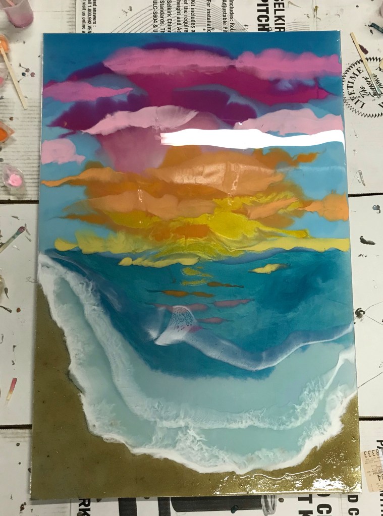 I made one last large picture. I was using a different type of UV resistant resin and couldn’t quite get the waves to work the way I wanted them to. Grrr…. I suppose there will be at least one more attempt some time in the future!