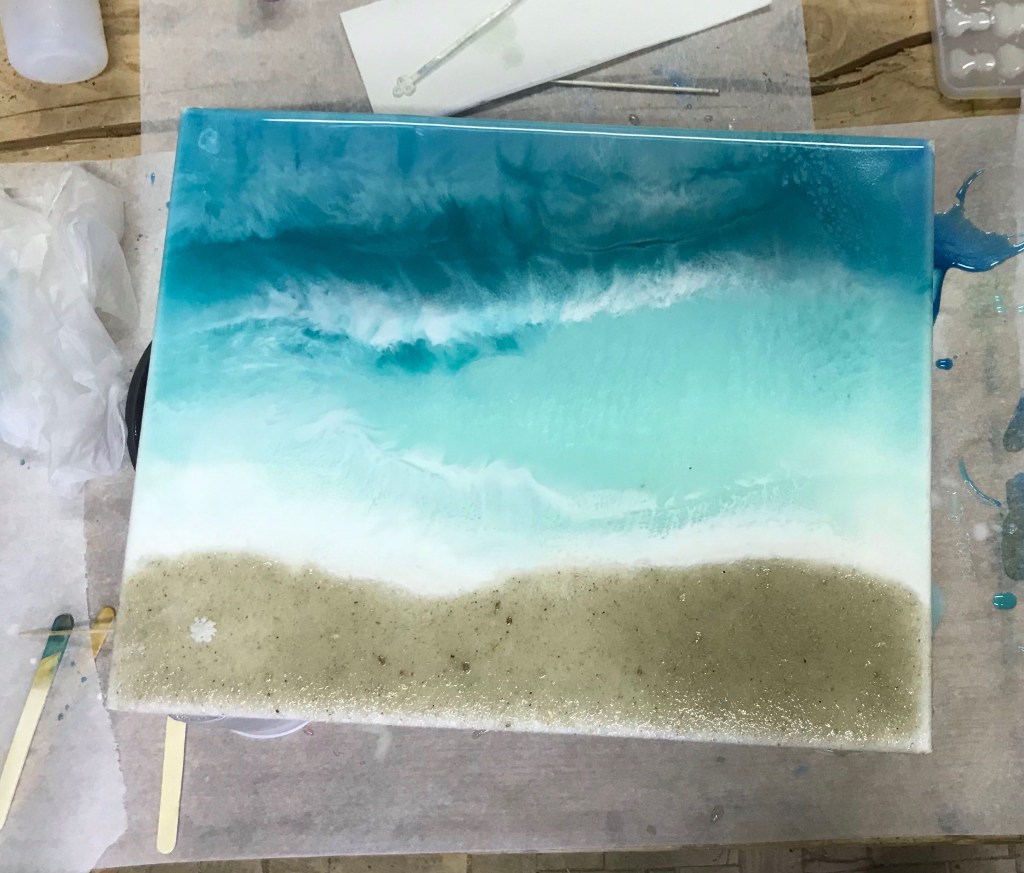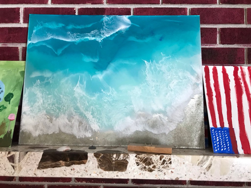 In this video Making Resin Waves that I helped my oldest daughter film for her YouTube Chanel “The Homeschool Clan” we go through the process of making an ocean scene on a canvas.