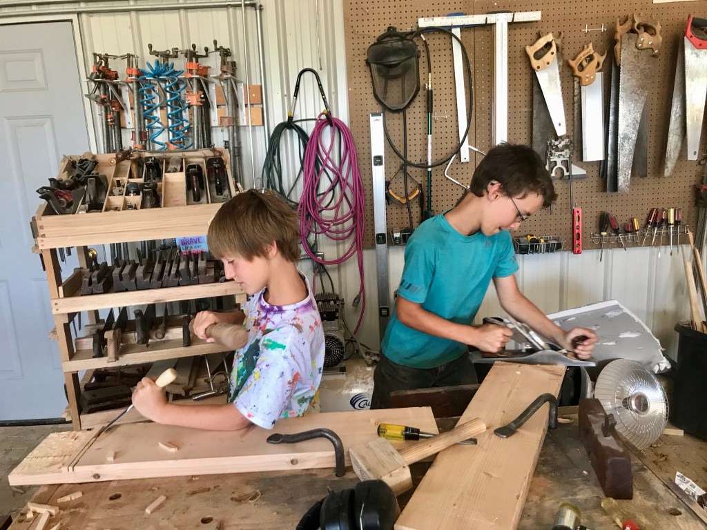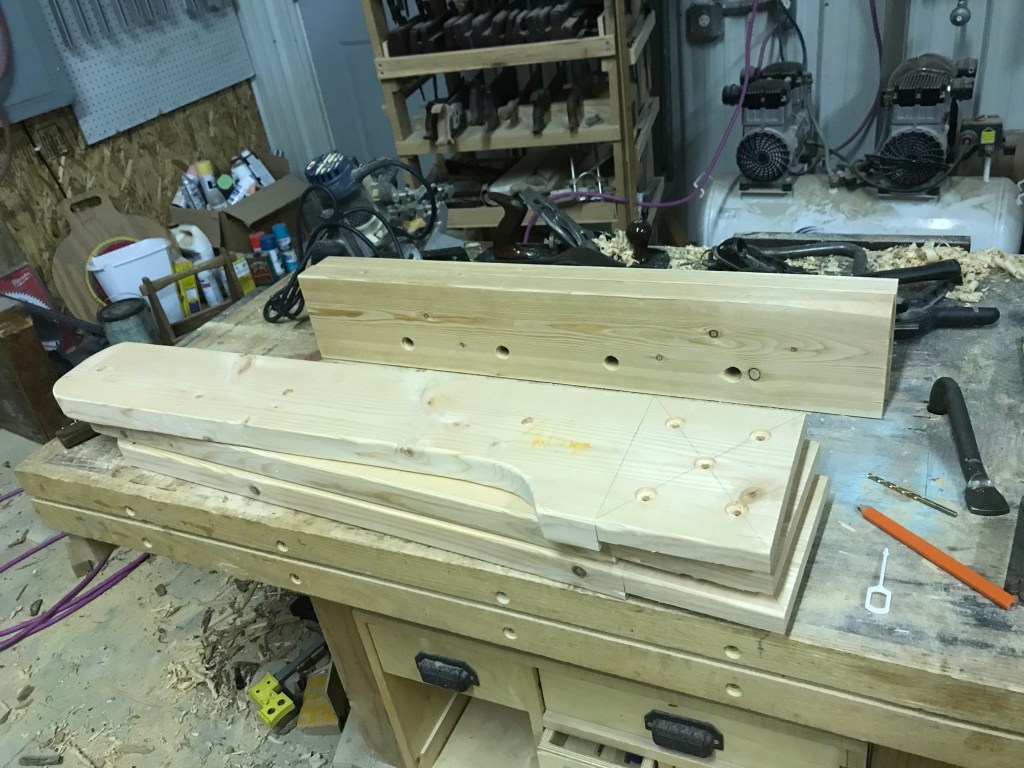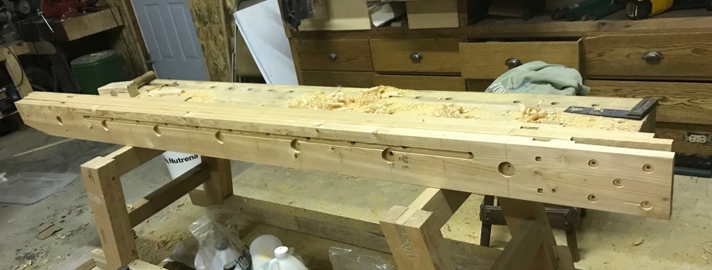 The uprights I made from 2×6’s and lapped the tops of both them and he 2×8 cross pieces. These would be bolted on and I wanted a ledge for them to sit on. My kids enjoy helping with this part. I cut kerfs across the removal area with a circular saw, then cleaned up with chisels and hand planes.