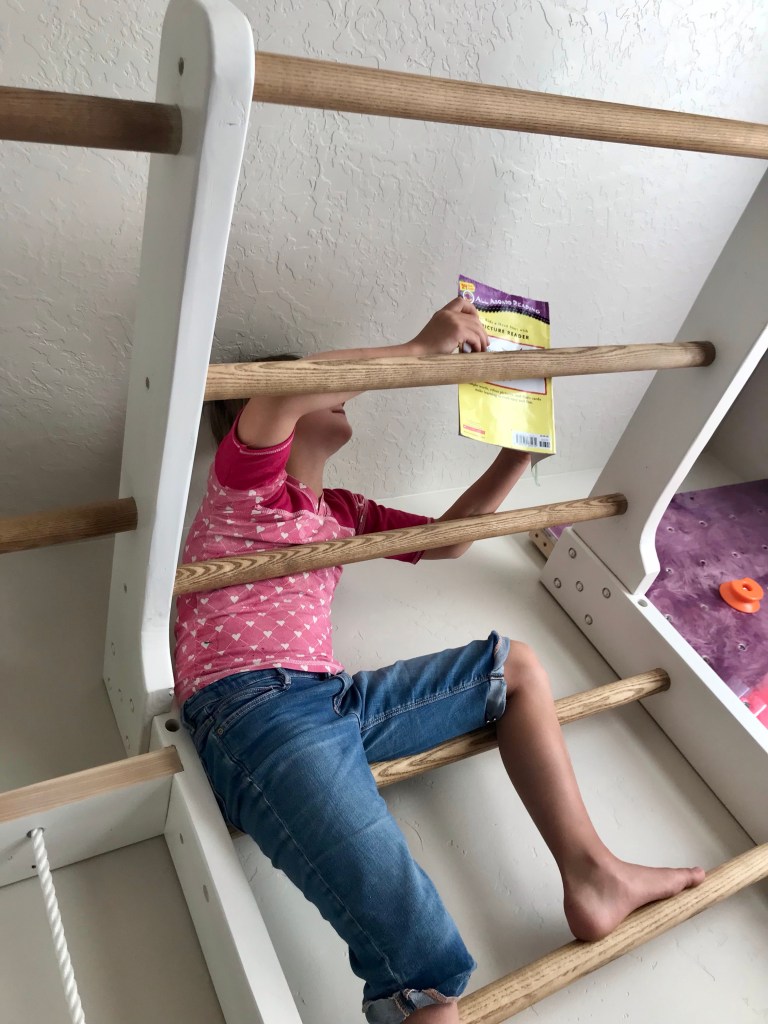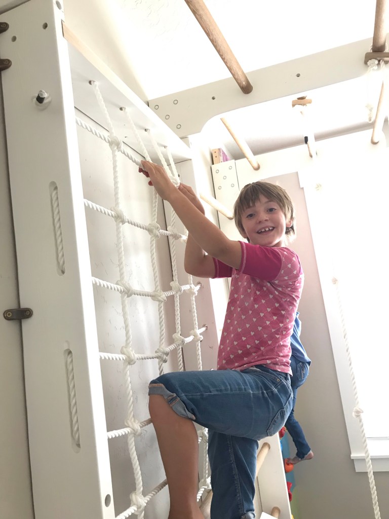 The picture below really made my day! B was helping her grandma place the holds on her wall and already climbing on it!